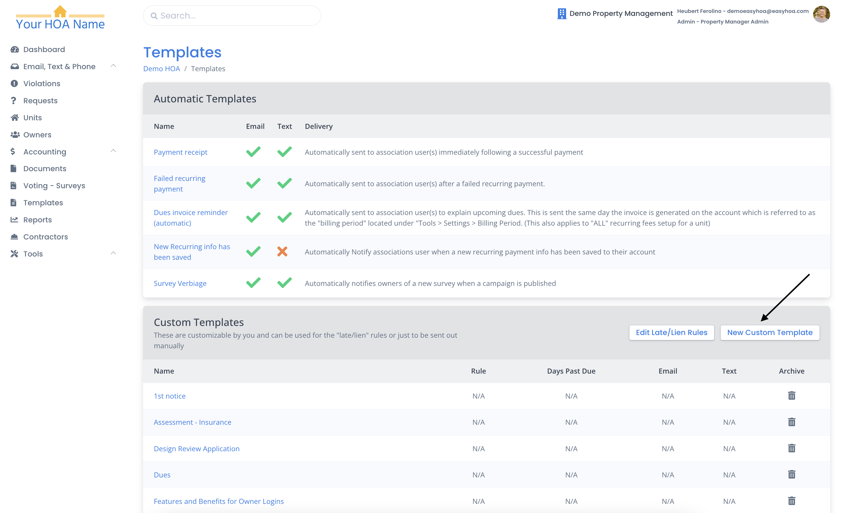 Property Managers or Self managed HOA board members typically use custom templates for the following reasons: