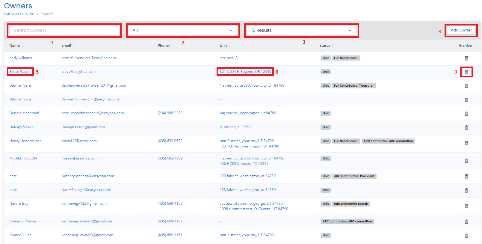 Note: You can not archive an owner if it is related to a unit.